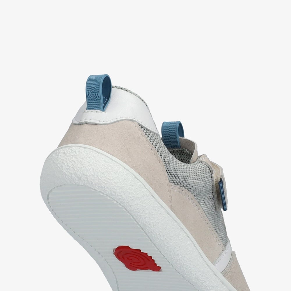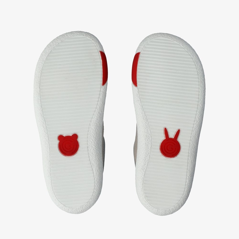 Our Lou has the potential to become your child's best buddy. Made from high-quality goatskin leather with sturdy mesh inserts, this children's shoe not only impresses with its simple and cool look, but is also extremely comfortable thanks to its thin and flexible sole. The child-friendly left and right markings on the outsole and the simple Velcro fastening make it easy to put on and take off. Breathable OnSteam® microfiber lining ensures a healthy foot climate from the very first steps, while the anatomical toe box provides a foot-friendly, wider fit in the toe area. Sustainable bonus: the recycled rubber sole.