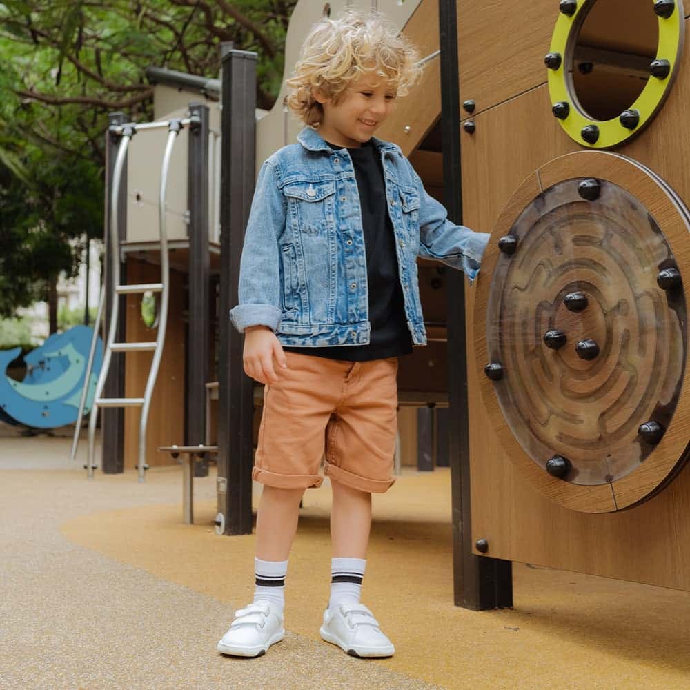 Universe Kids: Natural Move. Everyday Fun. Our classic Universe is now available for kids. These lightweight sneakers with flexible soles and a cool look support healthy movement right from the start. The simple Velcro fastening and heel loop make them easy to put on, while the left and right markings on the sole make putting them on child's play. For natural walking and small big steps.