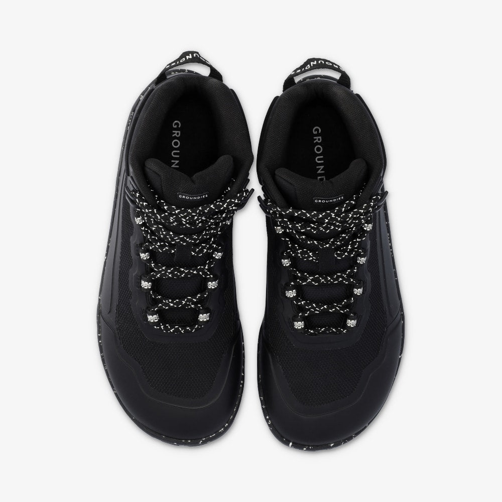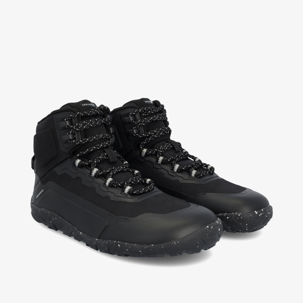 The Groundies All Terrain High is the ideal hiking shoe for outdoor adventures. With the redesigned GH2 TrueSense® hiking sole, it offers optimal grip, a wider toe area, and improved comfort. Its recycled polyester upper is waterproof and breathable, while the soft ankle padding ensures comfortable wear even on long hikes. The well-designed lacing zones on the instep provide stability and support. The All Terrain High combines the advantages of a barefoot shoe with the robustness required for demanding terrain – a must-have for outdoor enthusiasts.
