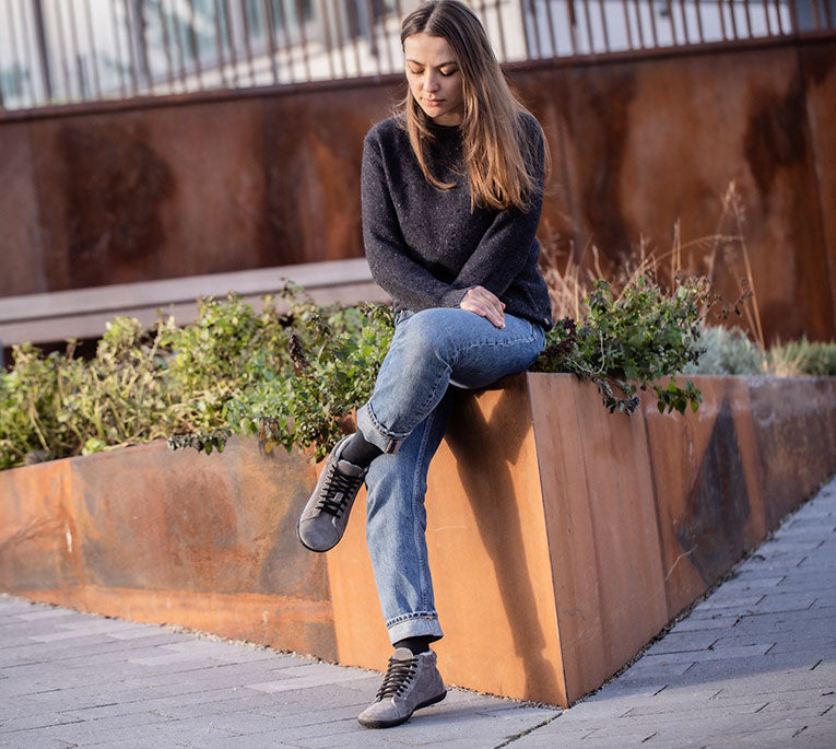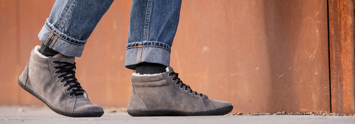 Es una pregunta lógica, ya que la suela extremadamente fina es una de las características principales de un calzado minimalista. En el calzado convencional, la suela gruesa forma una barrera entre el pie y el suelo. Cuanto más fina es la suela, más cerca está el pie del suelo. Y este suele estar frío en invierno.